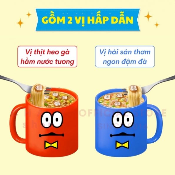 – Gồm 2 vị hấp dẫn: thịt heo gà hầm nước tương và vị hải sản, phù hợp cho cả trẻ em và người lớn