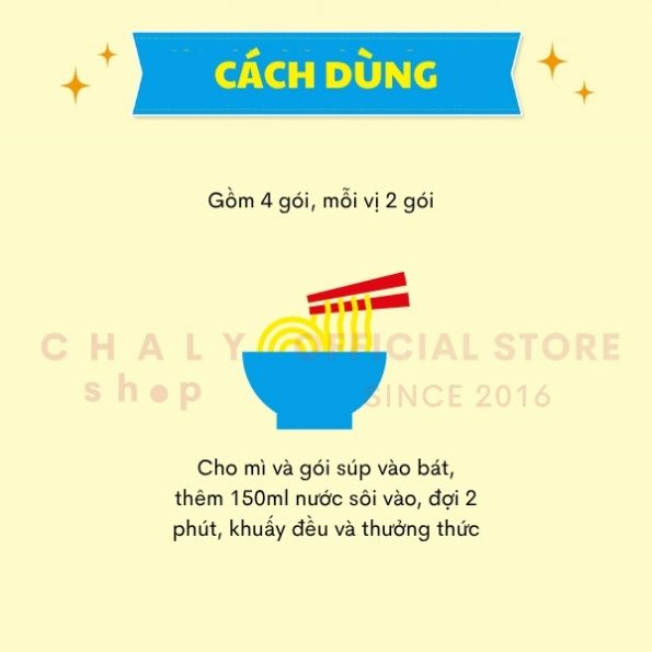 – Dễ dàng chế biến: Chỉ cần 2 phút với nước sôi, tiện lợi cho những ngày bận rộn