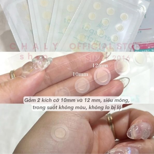 Có cấu tạo siêu mỏng, trong suốt không màu, miếng dán trị mụn Zero Spot Patch Nhật không lo bị lộ, lành tính, không gây tổn thương da. Với 2 kích thước 10mm và 12mm giúp chăm sóc cho da mụn từ mụn kích thước nhỏ, trung bình đến mụn bọc to