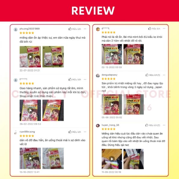 5 đánh giá cho Miếng dán trị nhiệt miệng lở miệng Taisho Nhật
