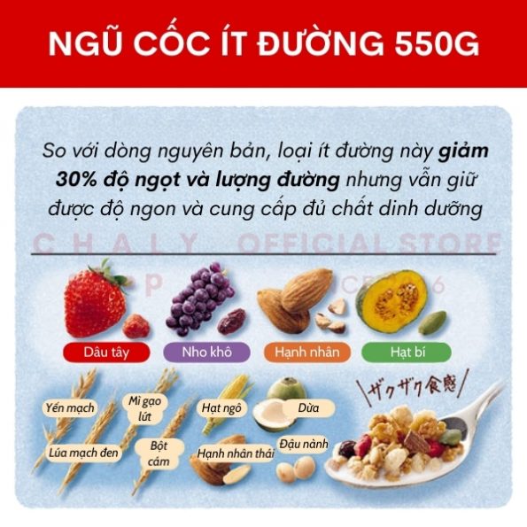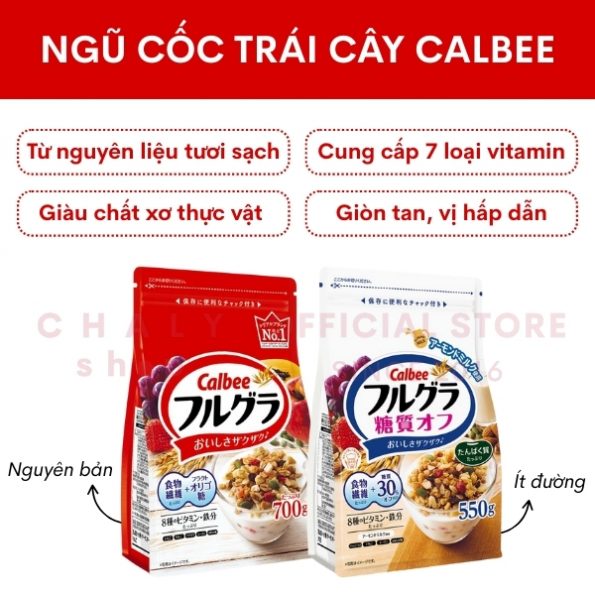– Ngũ cốc Calbee có rất nhiều loại khác nhau, hiện Chaly có 2 loại phổ biến nhất là nguyên bản và ít đường