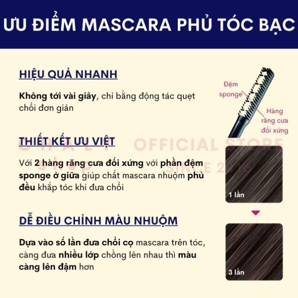 – Dễ dàng điều chỉnh màu nhuộm dựa vào số lần thoa mascara trên tóc. Càng thoa nhiều thì màu lên càng đậm hơn