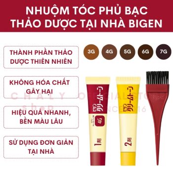 – Thuốc nhuộm phủ bạc của Nhật Bigen dạng nhuộm nhanh, thời gian nhuộm chỉ 10 phút