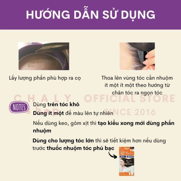 – Nhiều khách hàng tại Chaly và người Nhật sử dụng đều phản ánh phấn phủ nhuộm tóc đen của DHC Nhật lành tính hơn dùng thuốc nhuộm ngoài rất nhiều