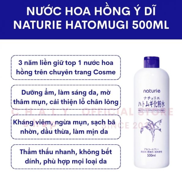 – Chai nước hoa hồng ý dĩ toner Naturie Hatomugi Skin Conditioner tại Chaly là mẫu mới nhất hiện hành