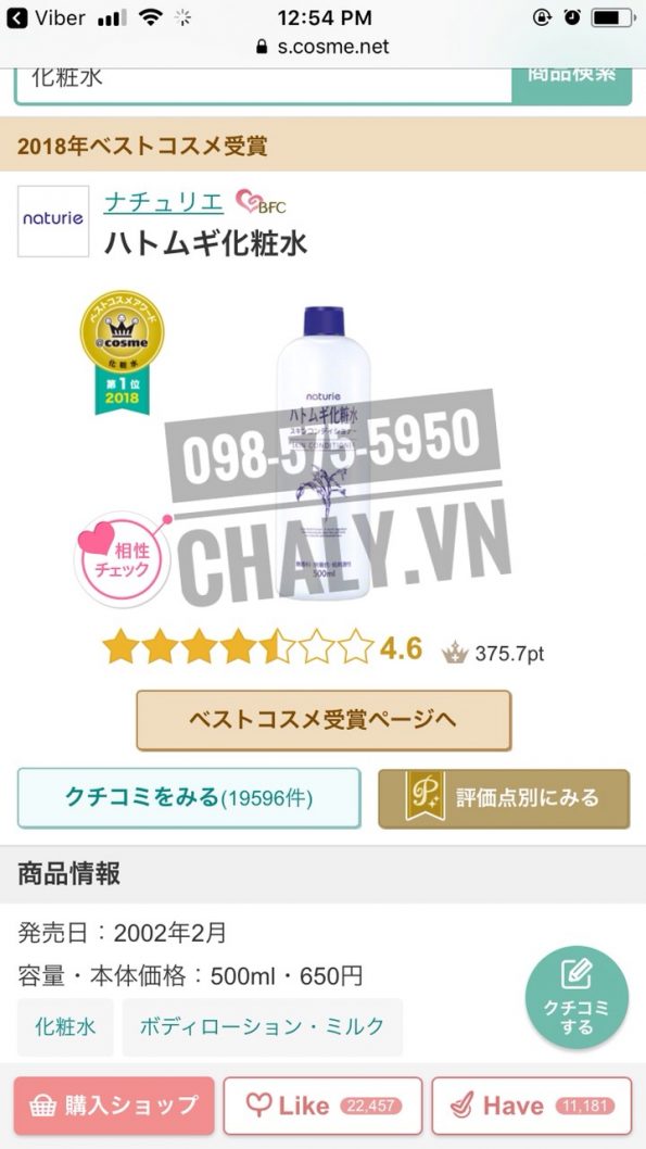 – Lotion Naturie 3 năm liền được bình chọn là nước hoa hồng tốt nhất tại Nhật trên chuyên trang Cosme Ranking uy tín, với số điểm cực cao và số lượng đánh giá ‘xưa nay hiếm’ gần 20 ngàn đánh giá