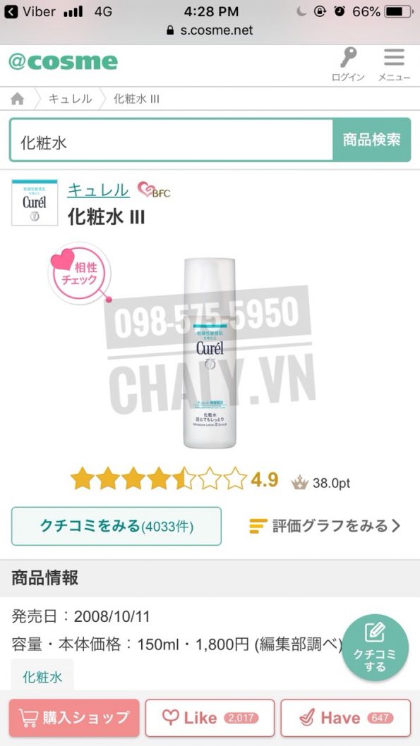 – Toner Curel được review điểm khủng 4.9 với hơn 4 nghìn đánh giá trên Cosme Ranking. Curel lotion liên tục lọt vào top nước hoa hồng số 1 của Nhật Bản nhiều năm liền