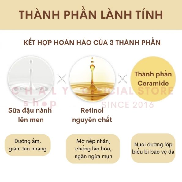 – Dù có giá thành vừa túi tiền nhưng lại chứa các thành phần làm đẹp da cao cấp được ưa chuộng như retinol, ceramide, tinh chất đậu nành lên men, sữa đậu nành .. mang lại hiệu quả tái tạo da tuyệt vời