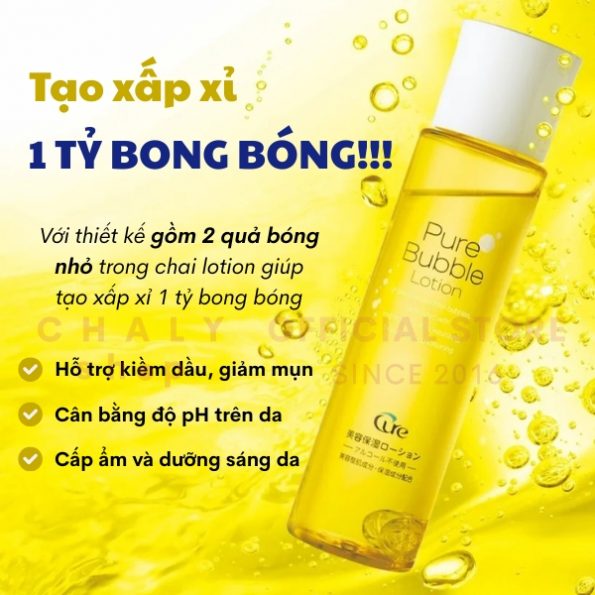 Từ khi ra đời đến nay, nước hoa hồng dưỡng da, kiềm dầu, cân bằng độ pH Cure Pure Bubble Lotion đã được nhiều chị em Nhật yêu thích do thành phần dịu nhẹ, không cồn, không hương liệu, không paraben, siêu thẩm thấu và an toàn lành tính với da nhạy cảm