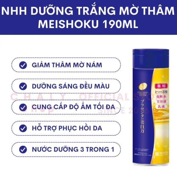 – Hãng mỹ phẩm Meishoku tuy chưa nổi đình đám trên trường quốc tế như Shiseido, SK-II, Kose, nhưng là một thương hiệu mỹ phẩm rất lâu đời tại thị trường Nhật nội địa, với bề dày hơn 130 năm, ra đời từ năm 1885 của thế kỷ 19