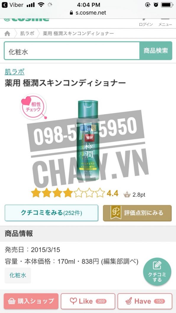 – Trên Cosme Ranking, lotion ý dĩ Hada Labo được review số điểm cao 4.4 cùng hàng trăm đánh giá khen ngợi, lọt top các loại nước hoa hồng cho da mụn của Nhật được yêu thích