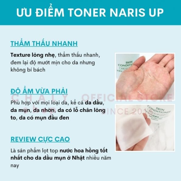 – Do đó, Naris Up toner phù hợp với da dầu, da hỗn hợp, da có mụn