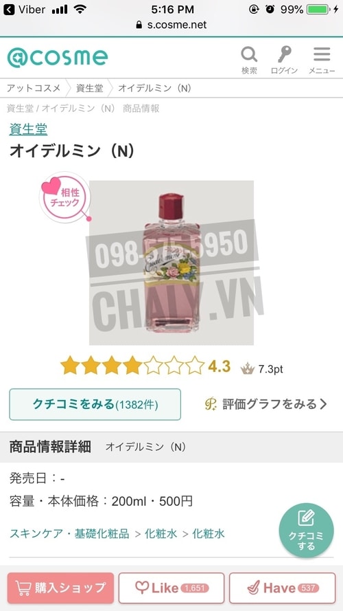 – Là nước hoa hồng của Shiseido Nhật có lịch sử lâu đời, toner Eudermine 200ml màu hồng có tới gần 1400 review đánh giá trên chuyên trang Cosme Ranking uy tín