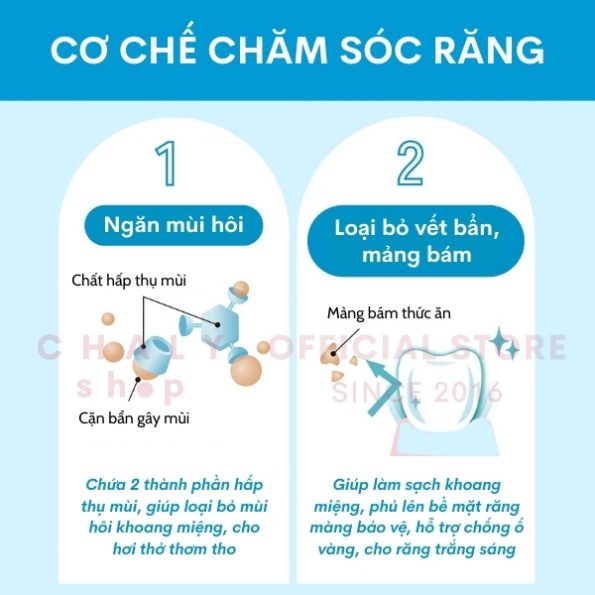 + Làm sạch răng miệng, chăm sóc bảo vệ răng, ngăn mùi hôi miệng hiệu quả