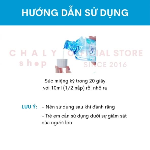 – Súc miệng kỹ trong 20 giây với 10ml (1/2 nắp)