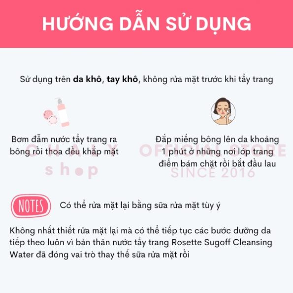 * Nước tẩy trang Rosette Sugoff cleansing water có thể thay thế cho sữa rửa mặt nên bạn không cần rửa mặt lại sau khi tẩy trang