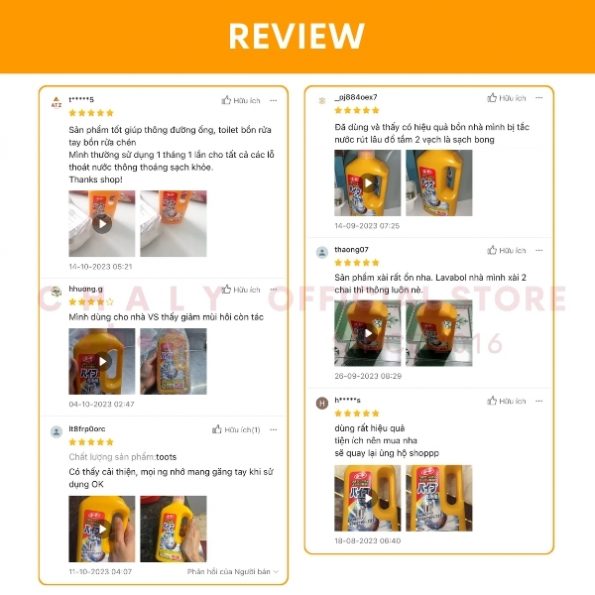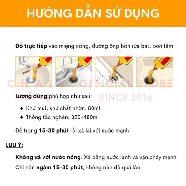 Cống rãnh tắc dình nước lên tới mấy thì chỉ cần đổ vào 1 tiếng là trơn tru. Khoẻ người kinh khủng. Mà lại sạch sẽ không hề có mùi hôi hay hắc hay gì khó chịu cả. Mình cảm thấy rất yên tâm cho sức khoẻ cả nhà khi đường ống đươc làm sạch và thông tắc thường xuyên. Chi phí cũng không bao nhiêu. 1 chai dùng khoảng vài tháng nên đâu có tốn kém mấy