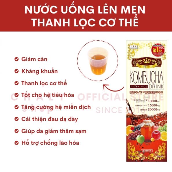 – Kombucha là loại thức uống lên men từ trà xanh, trà đen tổng hợp cùng nhiều enzyme lên men từ các loại trái cây
