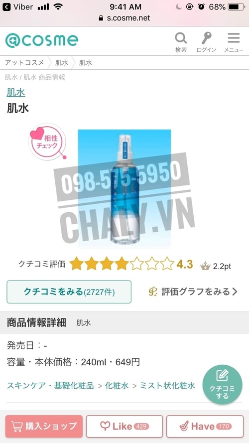– Review cao trên chuyên trang uy tín Cosme Japan với gần 3 ngàn review khen ngợi