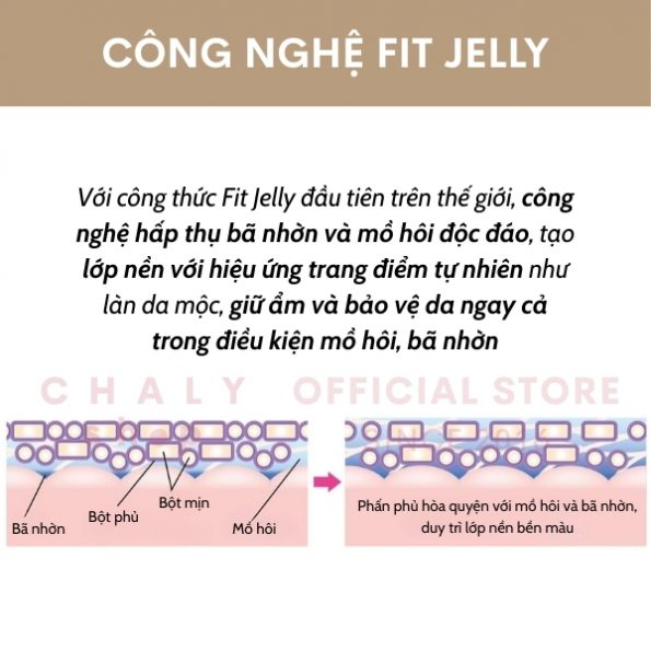 – Với công thức Fit Jelly đầu tiên trên thế giới, công nghệ hấp thụ bã nhờn và mồ hôi độc đáo, tạo lớp nền tự nhiên, bền bỉ cả ngày