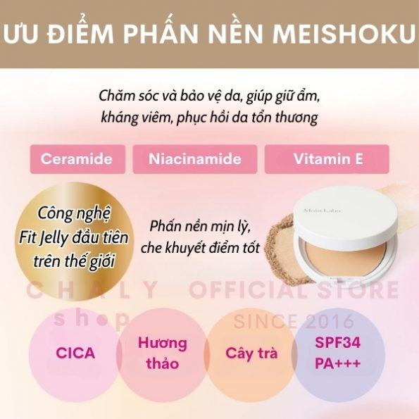 - 1 Thông tin chi tiết – Phấn nền che khuyết điểm Meishoku Moist Labo Nhật