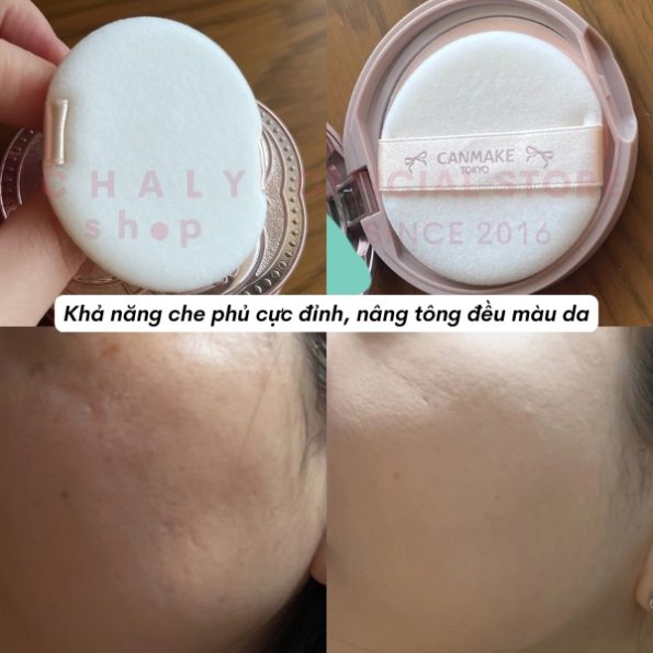 – Đồng thời, phấn nền Canmake còn chứa rất nhiều tinh chất dưỡng da, không chỉ bổ sung độ ẩm, làm mượt da mà còn nuôi dưỡng và làm đẹp cho làn da từ bên trong hiệu quả. Cụ thể