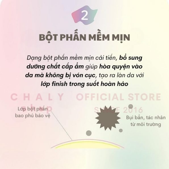 – Bột mịn được cấp ẩm giúp apply vào da dễ dàng hơn