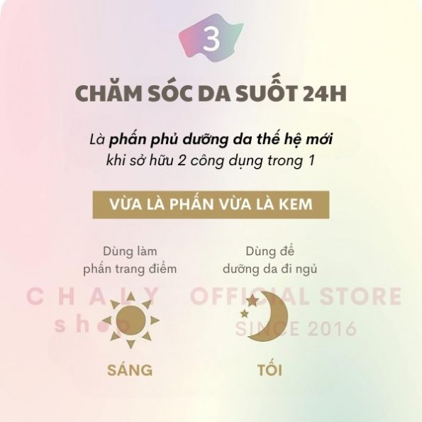 – Vừa làm phấn phủ trang điểm ban ngày, vừa làm phấn dưỡng da ban đêm