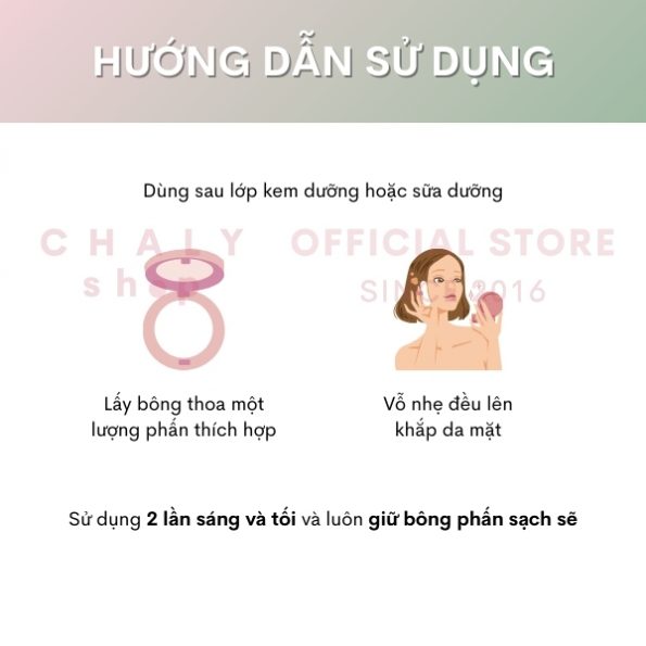 *Lưu ý: Hãy luôn giữ bông phấn sạch sẽ