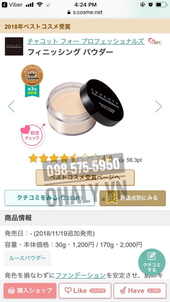 – Phấn phủ finishing powder Matte của Chacott Nhật được review ngất ngưởng trên chuyên trang Cosme, với số đánh giá lên tới con số đáng kinh ngạc – 12 nghìn review. Đây là con số ‘xưa nay hiếm’ trên chuyên trang này, chứng tỏ sức hút và độ nổi tiếng đặc biệt của dòng phấn phủ cao cấp này