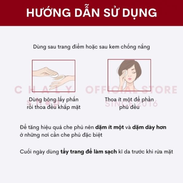 – Đổ phấn ra nắp và dùng bông phấn để lấy phấn và thoa đều khắp mặt. Nên thoa ít một để phấn phủ đều