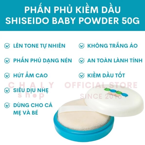 Với ưu điểm bột phấn nhỏ, bám mịn trên da, kiềm dầu tốt giúp bề mặt da khô thoáng, mịn màng, phấn nén Shiseido baby powder Nhật Bản được ưa thích sử dụng làm phấn rôm cho em bé và phấn phủ kiềm dầu cho chị em
