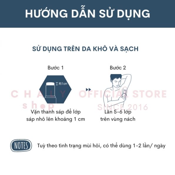 – Vì là dạng sáp khô nên thành phần không chứa cồn. Không gây thâm nách hay dị ứng khi dùng. Không bị nhờn dính khó chịu như dùng lăn nách dạng nước thông thường khác