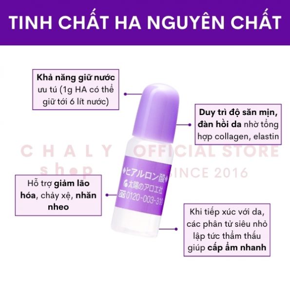 Shop Nhật Chaly cam kết cung cấp sản phẩm serum HA Nhật màu tím hyaluronic acid Taiyo no Aloe và nhiều sản phẩm serum tinh chất dưỡng da nội địa Nhật chính hãng 100%. Quý khách có thể đặt mua bằng các cách sau