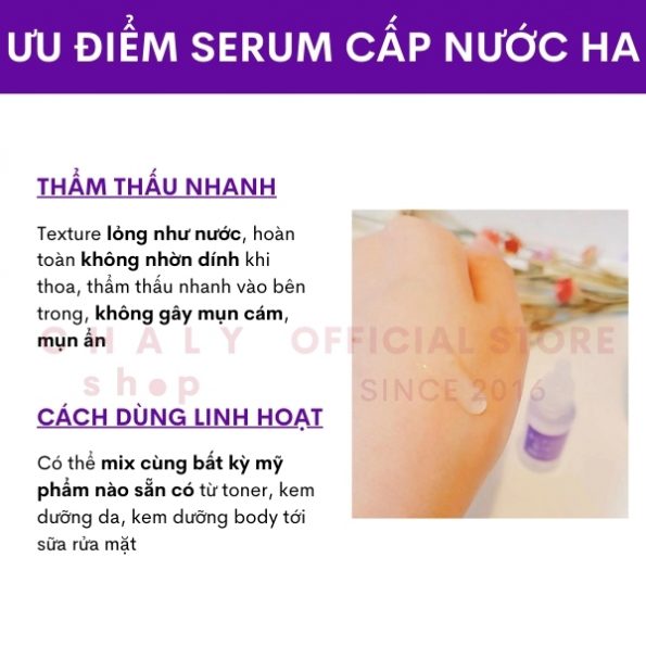 Ưu điểm của tinh chất serum cấp nước HA Nhật màu tím 10ml