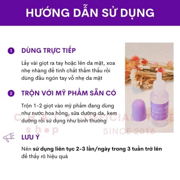 Cách sử dụng serum HA hyaluronic acid màu tím của Nhật