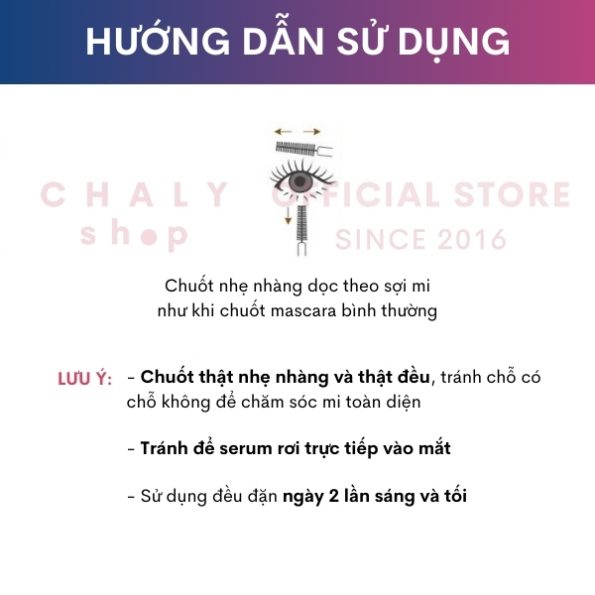 – Sử dụng đều đặn là bí quyết để serum dưỡng mi phát huy tác dụng. Nếu không dùng đều đặn 2 lần/ ngày hiệu quả sẽ kém hơn rất nhiều