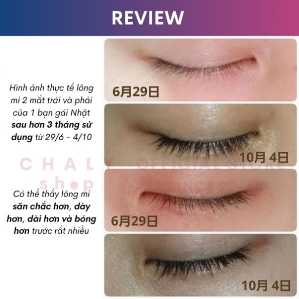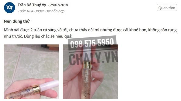 Thuý Vy: Dùng 2 tuần, chưa thấy dài nhưng mi khoẻ hơn trước, không còn rụng. Chắc là sẽ hiệu quả!