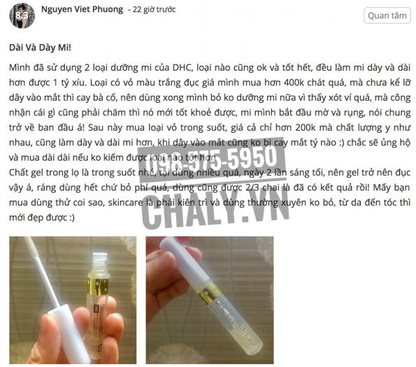 Một bạn khách trên fb Chaly review tinh chất dưỡng mi dhc, mi dài ra trông thấy