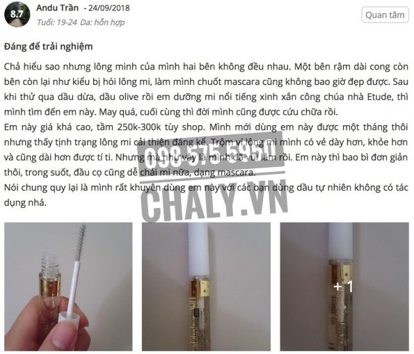 Anna TranHai: Dùng khoảng một tháng thấy rất oke. Không cay mắt, mi nhanh dài và dày