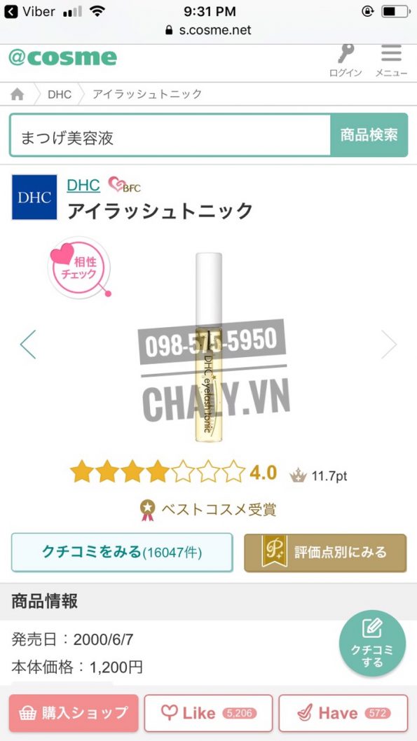 Serum dưỡng mi DHC eyelash growth tonic review siêu cao với hơn 16 nghìn đánh giá trên Cosme, là sản phẩm best seller mọi thời đại của DHC Nhật