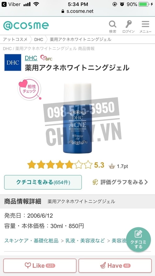 – Được đánh giá cao với hơn 600 review trên chuyên trang review mỹ phẩm số 1 của Nhật Cosme Japan, DHC whitening gel là một trong số các loại serum trị thâm mụn đang được yêu thích nhất tại Nhật nhiều năm nay