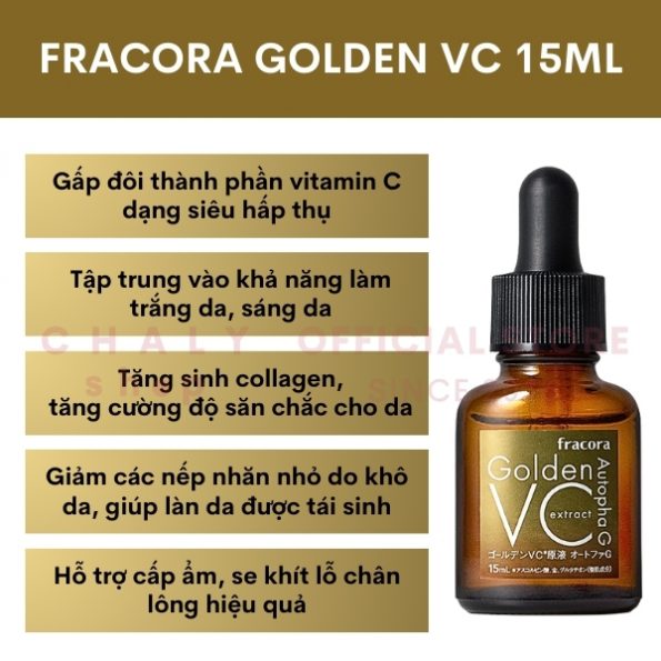 – Fracora golden VC tập trung vào khả năng làm trắng, làm mờ nám và tàn nhang đạt hiệu quả cao