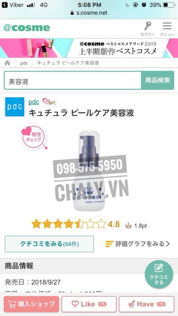 Serum sữa chua này được chấm tới 4.8 trên chuyên trang Cosme Ranking uy tín và hiện đang nằm trong top serum hot nhất ở Nhật từ 2019 tới nay