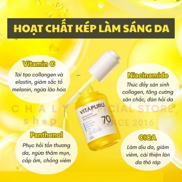 – Sự kết hợp tuyệt vời giữa thành phần hoạt tính làm trắng “dẫn xuất vitamin C có độ tinh khiết cao” và niacinamide cho làn da săn chắc, sáng, khỏe mạnh. Cụ thể: