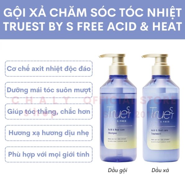 Set gội xả chăm sóc tóc nhiệt TRUEST BY S FREE Acid & Heat Care Shampoo & Treatment 480ml Nhật