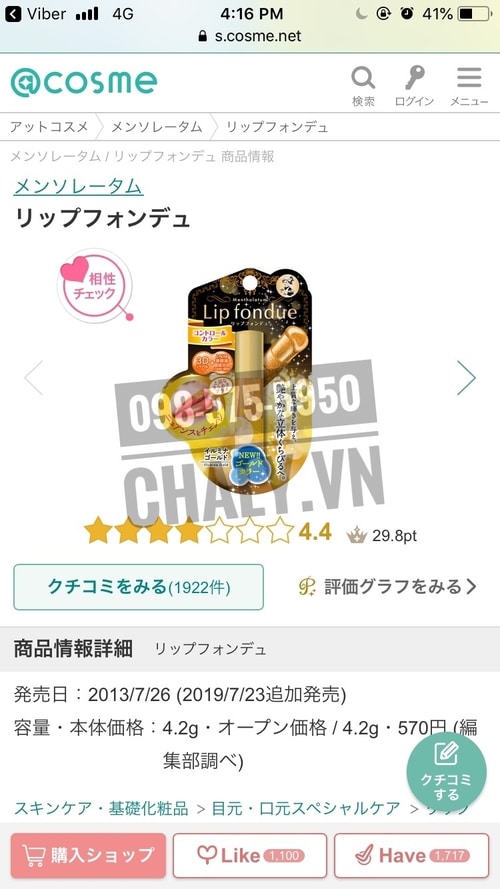 – Giá của son môi Rohto Mentholatum lip fondue của Nhật
