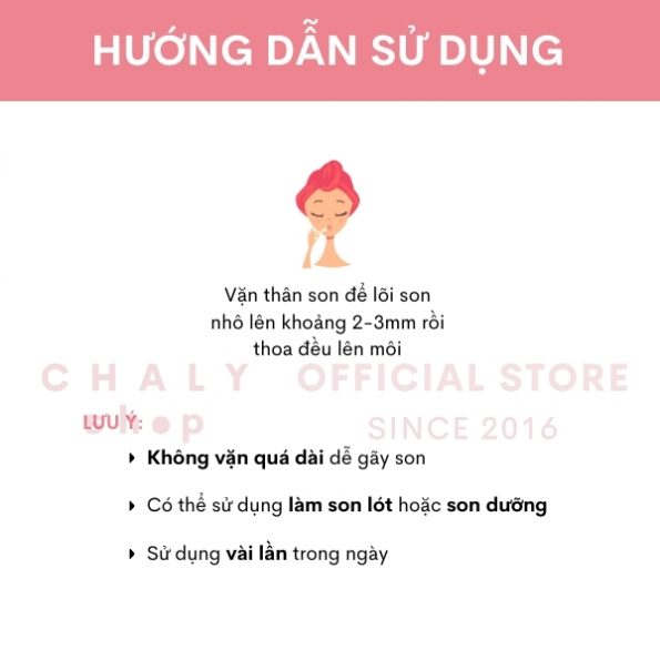 – An toàn, lành tính, không cồn, không paraben, không làm thâm môi