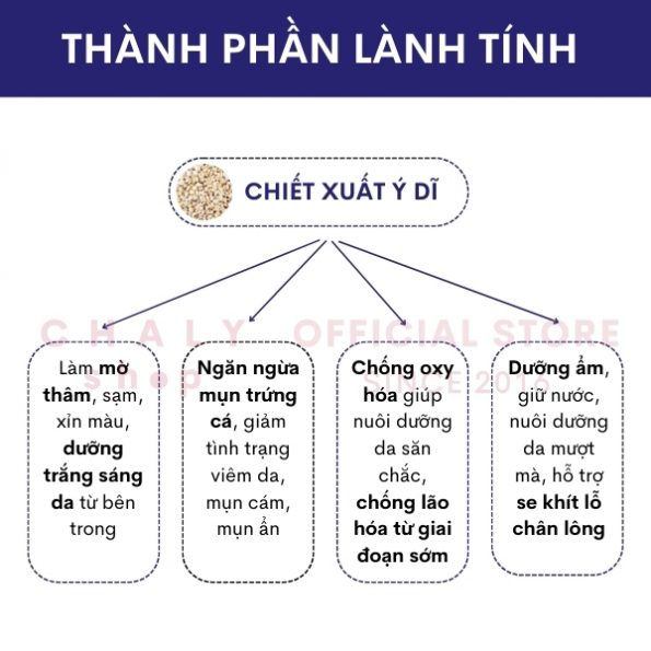 – Làm mờ các vùng da thâm, đốm nâu trên body hiệu quả nhờ thành phần ý dĩ