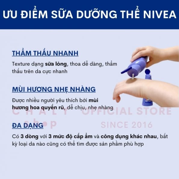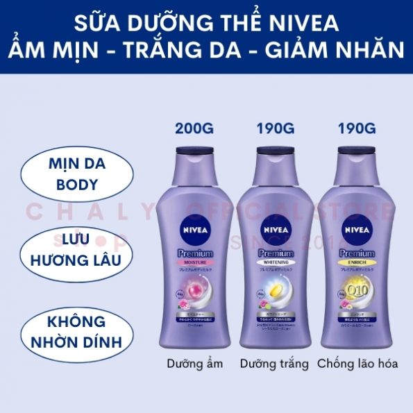 – Tuy thay đổi về bao bì và tên gọi nhưng thành phần chính cùng công dụng của mẫu mới không khác biệt. Shop Nhật Chaly đã về bản mới nhất của dưỡng trắng Nivea toàn thân rùi mọi người nhé